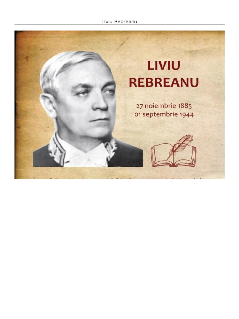 Liviu Rebreanu s-a născut la 27 noiembrie 1885 în Târlișua județul Bistrița-Năsăud și a fost. Liviu Rebreanu biografia S-a născut la 27 noiembrie 1885 în satul Târlișua azi în județul Bistrița-Năsăud. Abia aici in Sud descopera el ca scrisul are un caracter imponderabil. Scribd ist die weltweit größte soziale Plattform zum Lesen und Veröffentlichen.