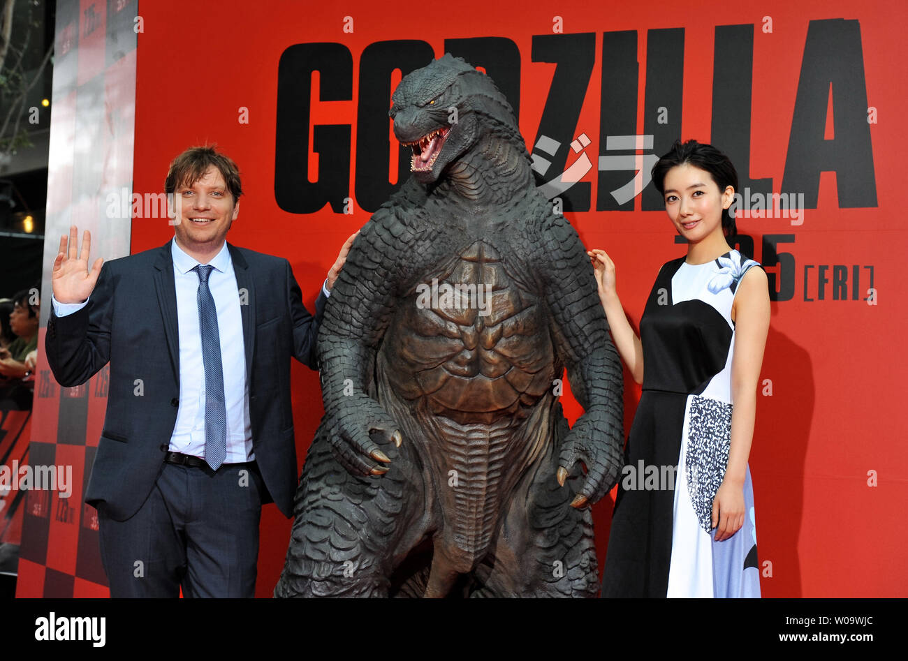 Director Gareth Edwards L And Japanese Actress Haru Attend A Japan Premiere For The Film Godzilla In Tokyo Japan On July 10 2014 Upi Keizo Mori Stock Photo Alamy